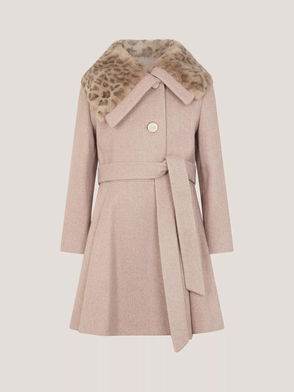 Kids' Leopard Collar Swing Coat, Oatmeal