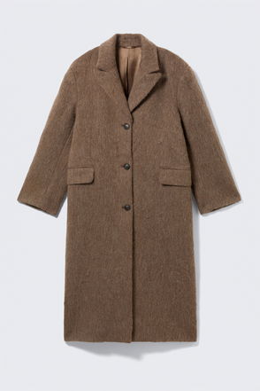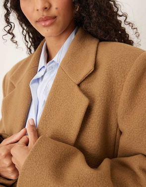Capsule Wool Mix Statement Shoulder Tailored Midi Coat In Tan