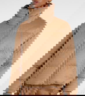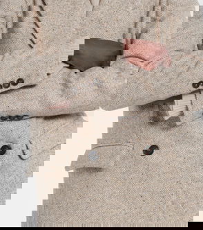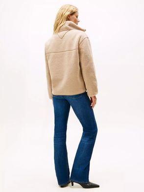 Cotton Mix Barn Jacket With Contrast Collar In Beige