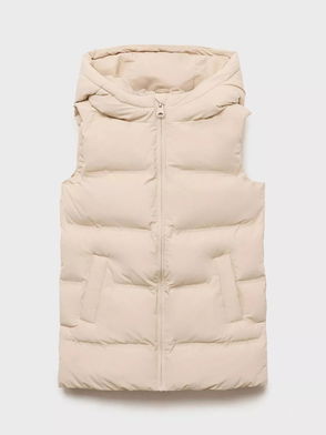 Kids' Lina Quilted Hooded Waterproof Gilet, Light Beige