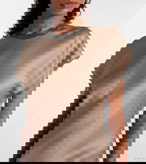Abercrombie & Fitch Short Sleeve Sweater Mini Dress In Beige