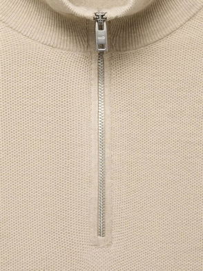 Cotton Mix Knitted Quarter Zip Jumper In Beige