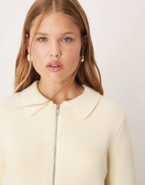 Pure Wool Loop Knit Cardigan With Collar In Beige