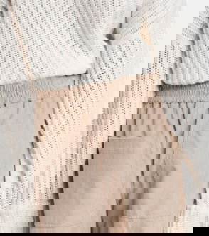 Light Weight Knitted Trouser Co-ord In Light Beige