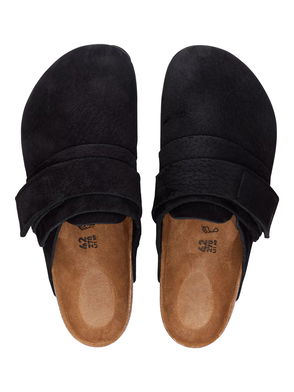 Boston Logo-Embossed Shearling-Lined Suede Clogs