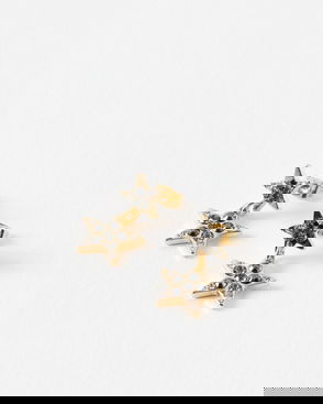 Irina Enamel Inlay Black Star Drop Huggie Earrings