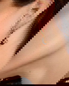 Irini Enamel Inlay Black Moon Drop Huggie Earrings