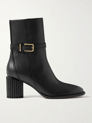 Eddie Buckled Scalloped Leather Ankle Boots