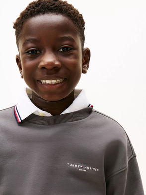 Kids' Cotton Blend Crew Neck Stacked Logo Sweatshirt, Nb Caviar