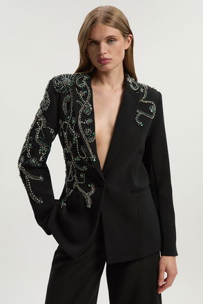 Ponte And Pu Mix Waist Seam Detail Tailored Single Breasted Blazer