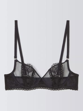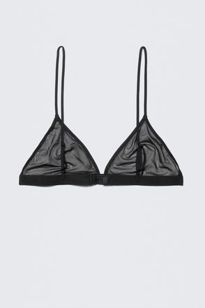 Sheer Mesh Lace Unpadded Triangle Bra, Black