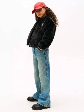 Kids' Faux Fur Bomber Jacket, Black