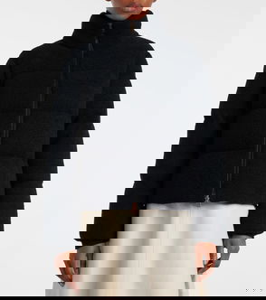 Oversized Quilted Jacket With Fleece Sleeves In Black & Beige