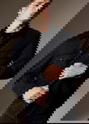 Grizzo Oversized Leather-Trimmed Denim Jacket