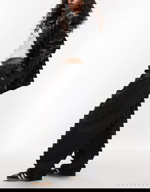 Ribcage Braided Wide Leg Jeans In Washed Black