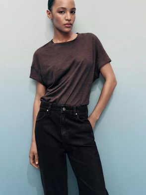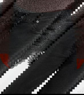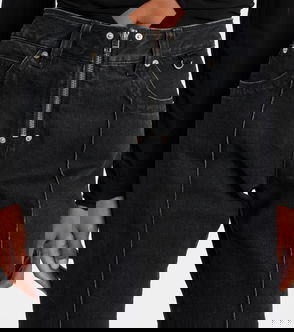 Belted Wide Jean Jeans With Front Seam Detail In Black