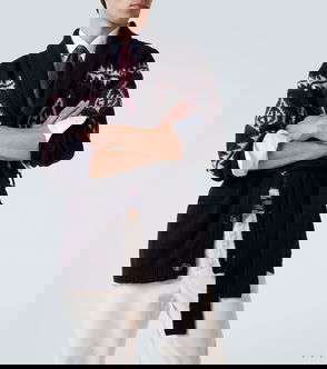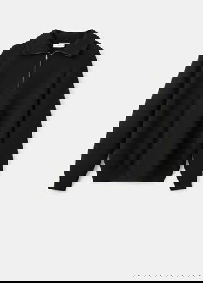 Textured Fleece Half Zip With Raglan Sleeves In Black