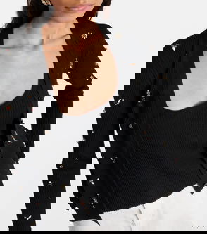 Botona V-Neck Cardigan, Black