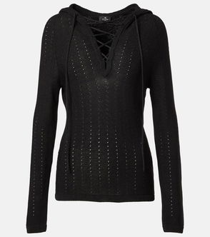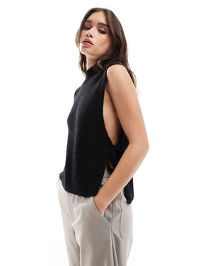 Wool & Mohair Blend Mock Neck Knitted Top With Side Tie Details In Black