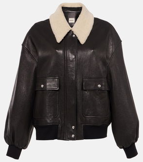 Layered Textured-leather And Organic Cotton-jersey Biker Jacket