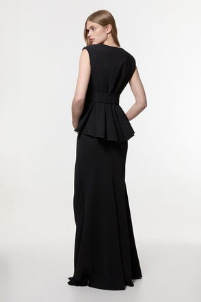 Soft Tailored Belted Peplum Tailored Maxi Dress