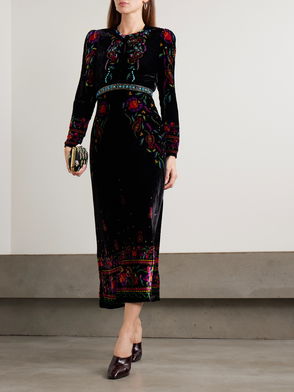 Claudia Twisted Embellished Printed Velvet Midi Dress