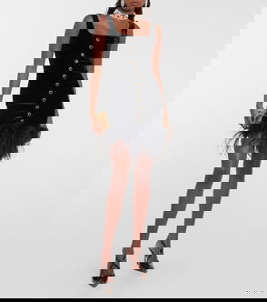 Feather-trimmed Velvet Minidress