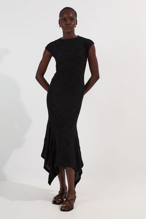 Plus Size Premium Viscose Linen Asymmetric Neck Tailored Pencil Maxi Dress