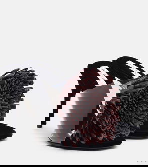 Crystal Embellished Chain Stiletto Heel Mule Sandals, Black
