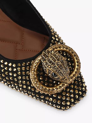 Strand Leathed Embellished Strap Wedge Heeled Sandals, Black