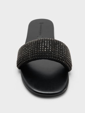 Faux Suede Crystal-Embellished Slide Sandals