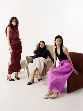 Wynn Patent Pointed-Toe Sculptural-Heel Slingback Pumps