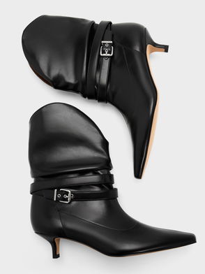 Karter Pointed-Toe Ruched Buckled Kitten-Heel Boots