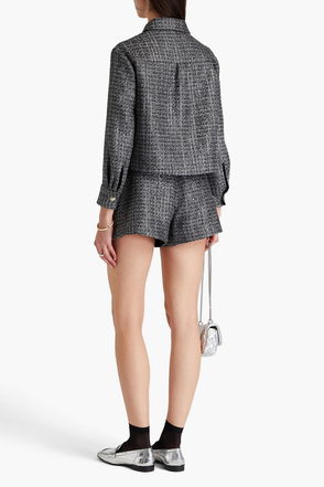 Skirt-effect Metallic Cotton-blend Bouclé-tweed Shorts