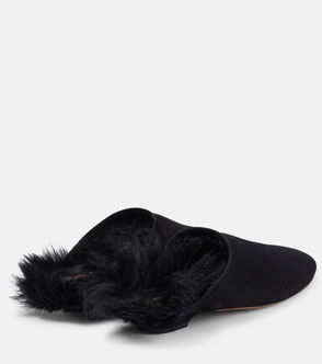 Maple Lane Classic Shearling Cuff Mule Slippers, Black