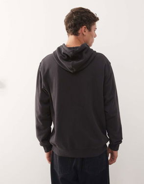Borg Lined Zip Hoodie In Washed Black