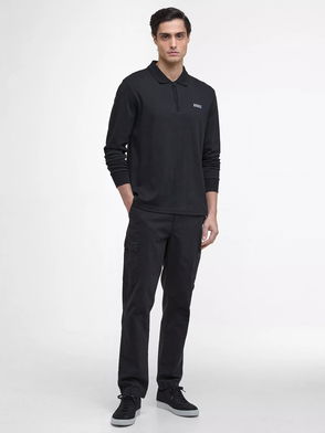 International Innes Interlock Cotton Regular Fit Long Sleeve Polo Shirt, Black