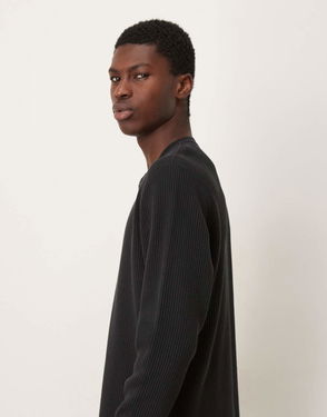 Abercrombie & Fitch Long Sleeve Waffle Henley Top In Black