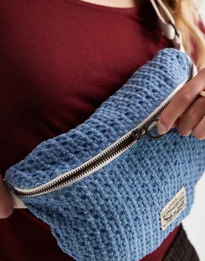 Fluffy Blue & Burgundy Striped Knitted Wrist Warmers