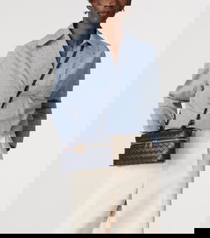Oak Street Leather Quilted Medium Phone Cross Body Bag, Smoke Blue