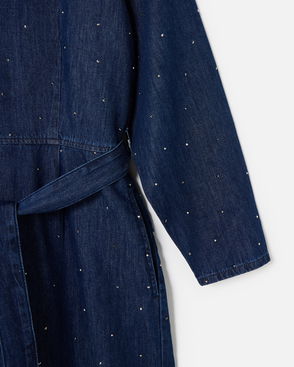 Dark Blue Denim Hot Fix Sparkle Tie Waist Jumpsuit