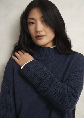 Harmony Rosie Stripe Wool Rich Jumper, Airforce Blue