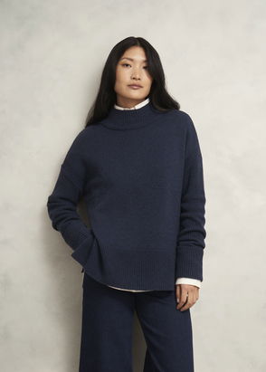 Wool Blend Quarter Zip Knitted Jumper In Blue