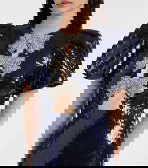 Cressida Puff-sleve Sequined Gown