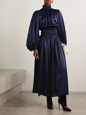 Dream Ruffled Shirred Silk-satin Maxi Skirt