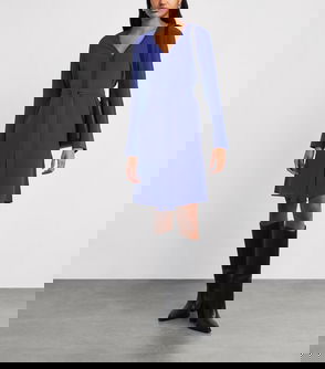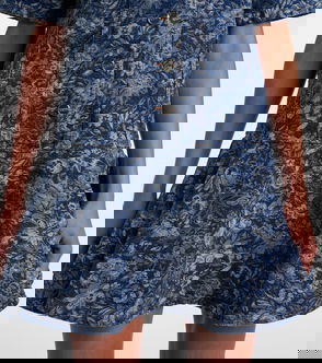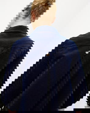 Navy Blue Corduroy Collared Mini Shirt Dress