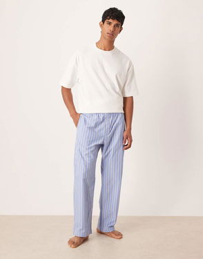 Pure Cotton Stripe Poplin Pyjama Trouser Bottoms In Blue