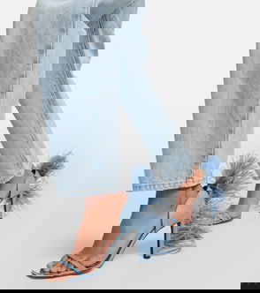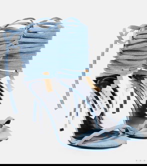 X Sergio Rossi Amazona Feather-trimmed Denim Sandals
