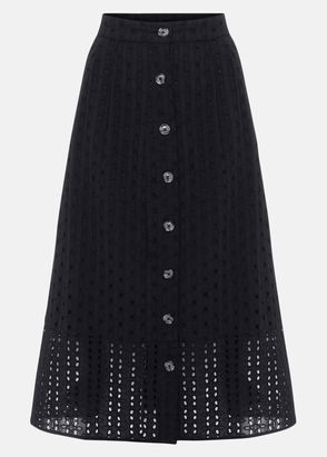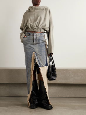 Distressed Cotton-trimmed Denim Maxi Skirt