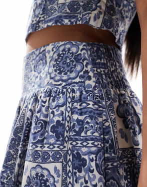 Abercrombie & Fitch Co-ord Tiered Maxi Skirt In Blue Tile Print